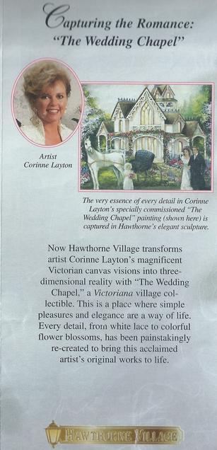 At the top of the page on the right, you will see, My Wedding Chapel was now featured on the Cover of Hawthornes Catalog & inside, With Amazing Artists work, as Norman Rockwell, Charles Wysocki, Hummel, Thomas Kinkade, Mayberry, & Mcdonalds, so it was quite a Thrill & Honor, So Thankful to the Lord for Wonderful Years as a Collectible Artist for Hawthorne Architectural Structures, Bradford Exchange with Plates, & Ashton Drake Gallery for the Dolls.